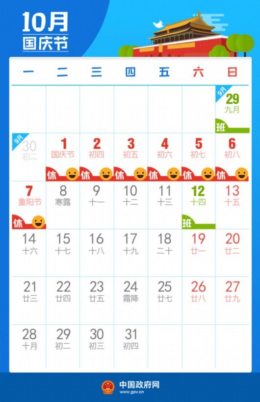 根据安排,今年国庆节10月1日至7日放假调休,共7天。9月29日(星期日)、10月12日(星期六)上班。很多HR在算工资的时候又该头痛了!